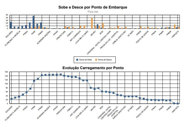 Sobe e Desce: projeção de quantidade de passageiros que sobem e descem nos pontos de uma determinada linha, fornecendo o F.R. (Fator de Renovação), indicador da rotatividade de passageiros na linha.