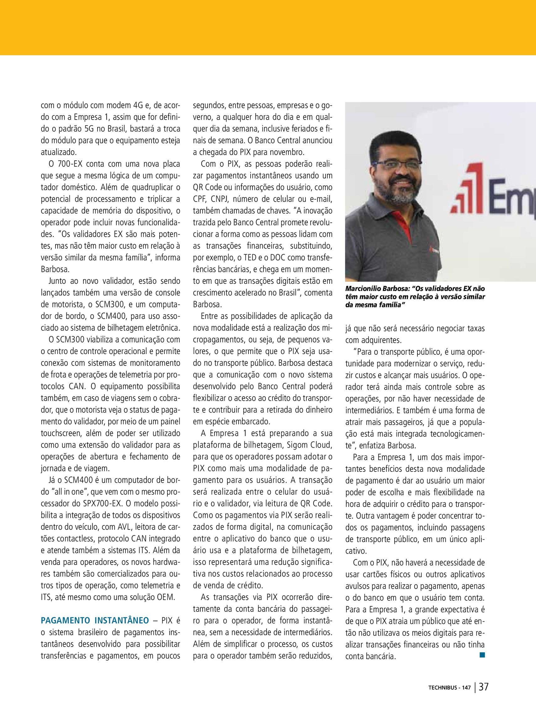 Este texto foi publicado na Revista Technibus (Ano 29, Edição 147), da OTM Editora, apresentando, com exclusividade, os novos hardwares lançados pela Empresa 1 em 2020: os validadores SPX700-EX, o console do motorista SCM300 e o computador de bordo SCM400.