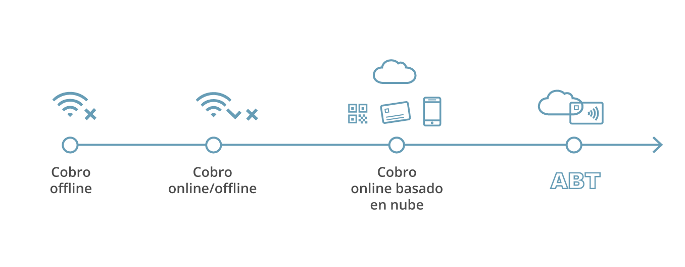 > Sistema compatible con todos los medios de pago (tarjeta sin contacto, aplicación móvil, wearables, etc.).